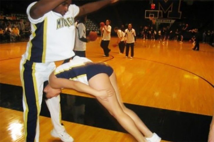 この写真はおそらくこのページで一番当惑する写真ではないでしょうか。男性が女性をキャッチする予定だったのか、その彼女が何か失敗したのか・・・。いずれにせよ、確実に顔から床に落ちたと考えられる彼女にとってこのピカピカのフロアは相当辛いものだったでしょう。