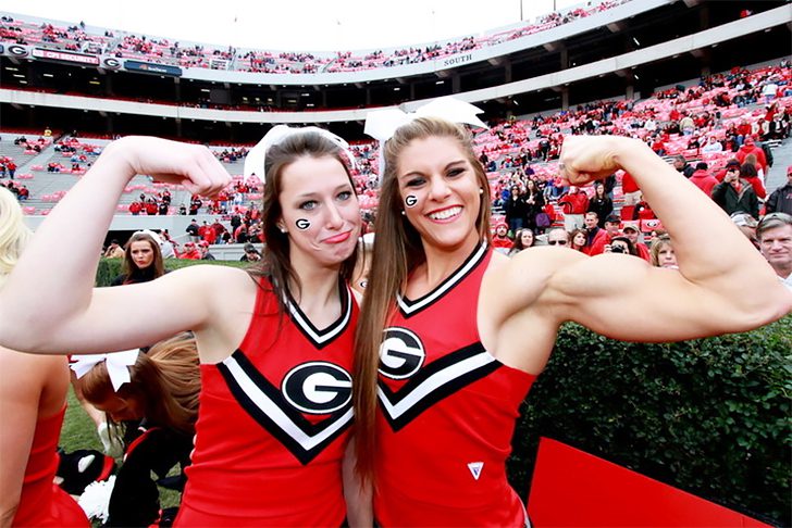 その偏見を持っているそこのあなた。この写真を見て驚くに違いありません。ご覧のとおり、右側の女性は非常に鍛えられた筋肉を誇っています。おそらくアームレスリングの試合でほとんどの男性を打ち負かすことができるでしょう!この女性が素晴らしい筋肉を持っていることは理にかなっています。事実彼女達は常にジムにある大きなウェイトと同じ体重のチアリーダーを持ち上げたり投げたりしているのですから。