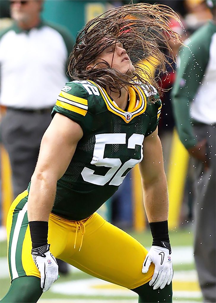 まさにシャンプーCMから飛び出してきたような写真!アメフト選手のクレイ・マシューズが彼の素晴らしい髪の毛を世界に披露しています。