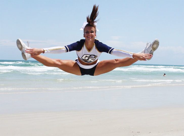 この女性がこんなジャンプを簡単にやってのけた瞬間を捉えたこの写真。彼女のチアに対するプロ意識の高さと献身を感じます。このレベルに至るまでに彼女が長い月日を練習に費やしたに違いありません。空中でのここまでの開脚に勝るものはないでしょう。