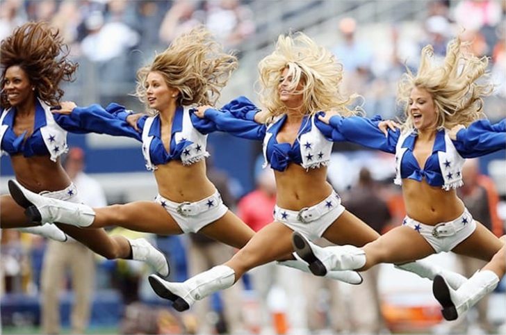 この写真はこれ以上ないタイミングで撮影されましたね!集団でのジャンプをこなすと同時に、髪まで一緒の動きをしています。一体どうすればここまで揃うのでしょうか。きっとそれはダラスカウボーイズチームの秘密なのでしょう。