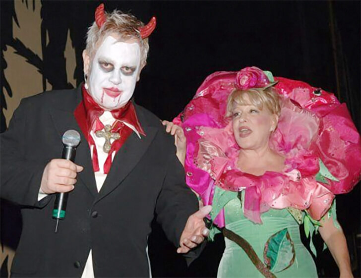 We’re talking about Bette as an over-the-top, glorious Flower, rocking a massive, ruffled headpiece and a shimmering outfit that makes her look like a couture floral arrangement. Her partner in crime, Elton, went as a classic, impeccably dressed Vampire, who had just finished a bloody meal! She first gained fame through her Broadway breakthrough in the 1970s, while he became a global legend after his 1970 hit, “Your Song.”