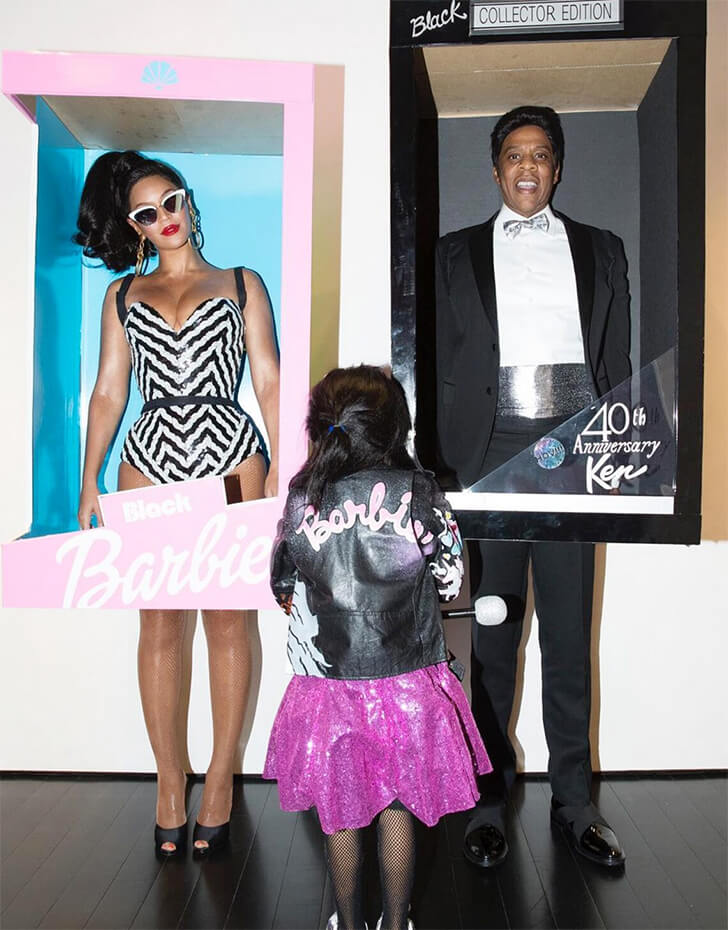 Beyoncé and Jay Z turned heads in 2016 at a Halloween party in Los Angeles when she arrived as “Black Barbie” and he as “40th Anniversary Ken: Black Collector Edition.” Beyoncé embraced the blonde ponytail and vintage swimsuit that made the costume a living collector’s item, while Jay Z rocked an oversized Ken wig. What makes their costumes unique is the literal packaging that turned them into display-ready icons.