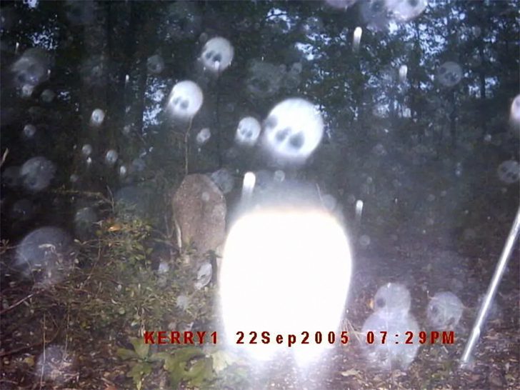 雨滴に反射した光が無数の顔のように浮かび上がり、背筋がゾッとする光景。画面の左下には無防備に草を食むシカの姿があり、これが何かの予兆なのか、不安がよぎります。