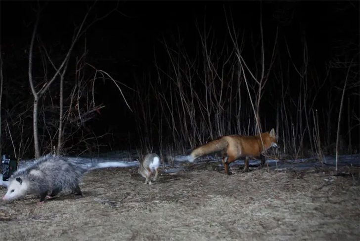 捕食関係にもなりそうなキツネ、ウサギ、オポッサムの“謎の集会”!この夜ばかりは、彼らは何かしらのイタズラ大作戦を終えた**“チーム”**だったのかもしれません。不思議な友情を感じさせる瞬間です。