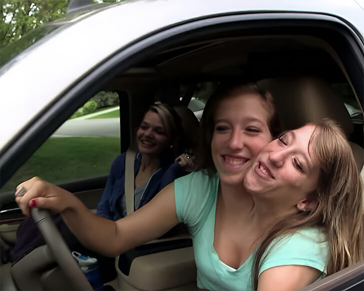 Trotz der besonderen Voraussetzungen meisterten beide die Fahrprüfung erfolgreich. Da das Gesetz für jede Person eine eigene Fahrerlaubnis verlangt, mussten Abby und Brittany sowohl die theoretische als auch die praktische Prüfung jeweils absolvieren. Mit sechzehn Jahren hielten sie aber schon ihren eigenen Führerschein in den Händen. Diese neue Mobilität brachte ihnen ein auch nochmal deutliches Plus an Selbstständigkeit.