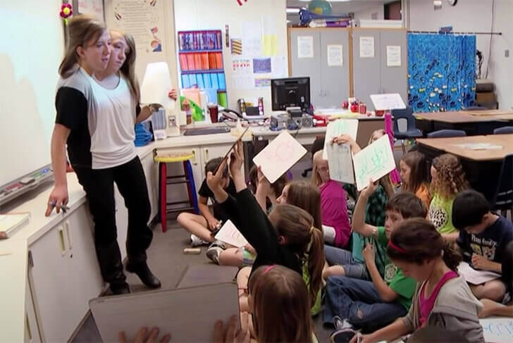 Während Abby den Unterricht klar strukturiert, hat Brittany immer die Klasse im Blick und greift ein, wenn es mal unruhig wird. Die Rollen wechseln sie dabei fließend, ganz ohne extra Absprache. Für die Schüler bedeutet das volle Aufmerksamkeit von gleich zwei Lehrerinnen. Schummeln? Bei Abby und Brittany ist das kaum möglich. Trotzdem schätzen die Kinder ihre Lehrerinnen sehr. Die Schwestern gelten als streng, aber fair. Sie sind engagiert, nahbar und immer mit einem offenen Ohr für ihre Schüler.
